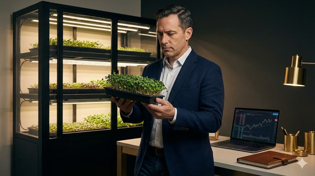 Estamos falando sobre o ato de cultivar valor real dentro do seu apartamento. Estamos falando sobre lucrando com microgreens em casa. Não se trata de uma jardinagem recreativa para relaxar no fim de semana, mas sim de um modelo de negócio validado, com alta margem de lucro e demanda crescente, que exige pouco espaço e, acima de tudo, mentalidade estratégica.